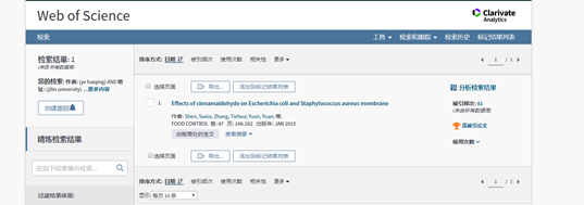 韩国三级 为第一作者单位,在食品领域TOP 期刊“FOOD CONTROL”期刊发表论文《Effects of cinnamaldehyde on Escherichia coli and Staphylococcus aureus membrane》,到 十一月/十二月 2019 为止,受到引用的次数已将其归入其学术领域中最优秀的 1% 之列,入选“ESI高被引”。(全文链接://www.sciencedirect.com/science/article/pii/S095671351400379X?via%3Dihub)