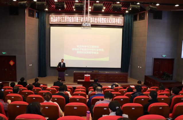 在西区图书馆二楼报告厅召开2018年度领导班子和领导干部年度考核暨院长试用期考核会。学院领导、全体教职工参加了会议。学校考核工作组长、党委组织部副部长齐晓亮、科长杨可莅临指导。会议由党委书记高福和同志主持。