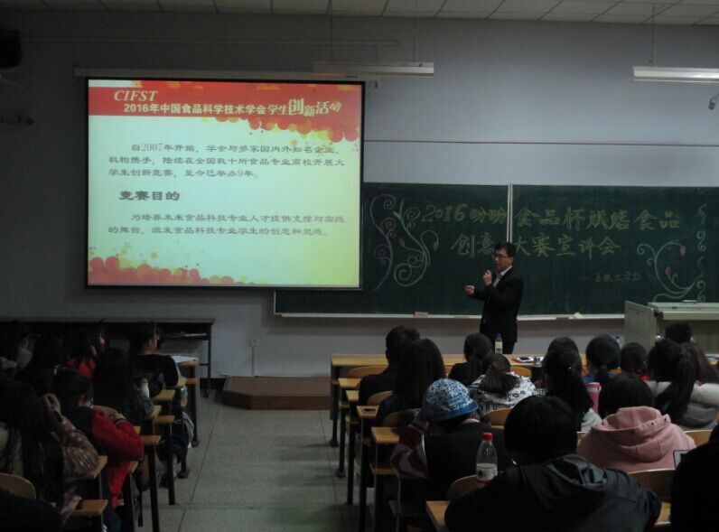 承办的“2016年盼盼食品杯烘培食品创意大赛”校园宣讲会于4月27日晚18:00在西区科学讲堂200教室成功举办。中国食品科学技术学会侯威、盼盼食品集团研发中心高级工程师张冶、韩国三级
