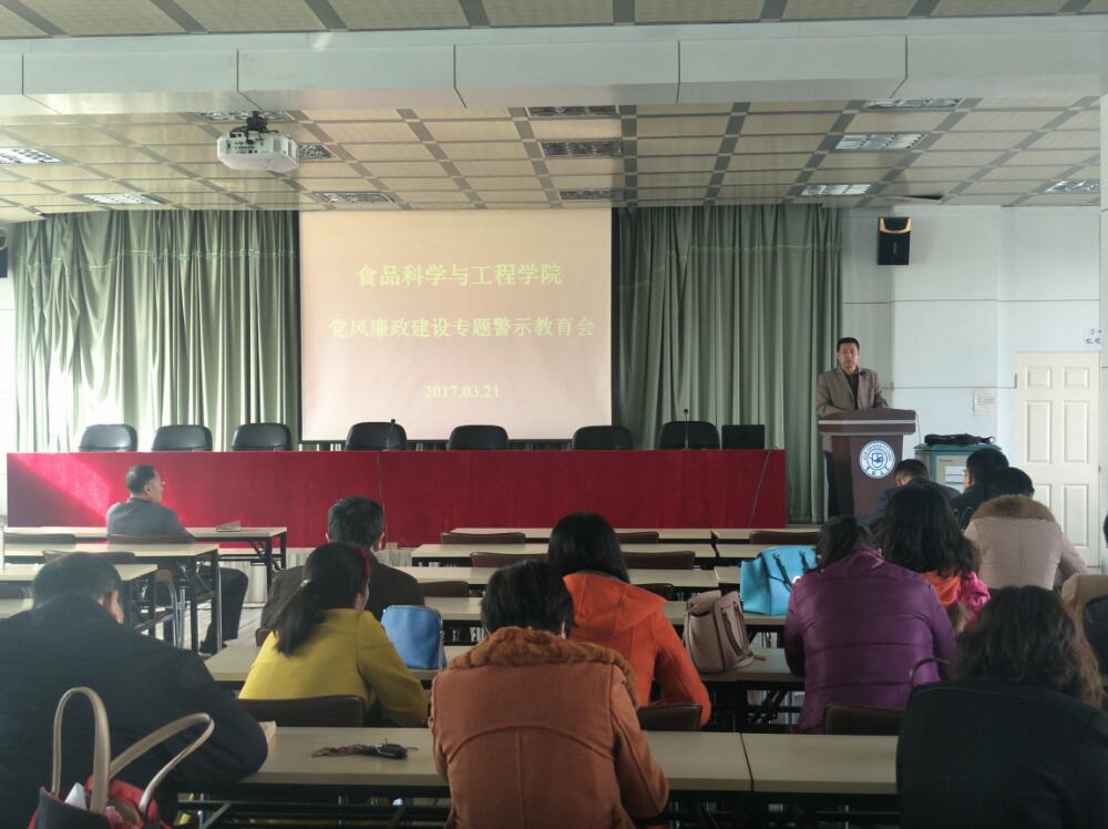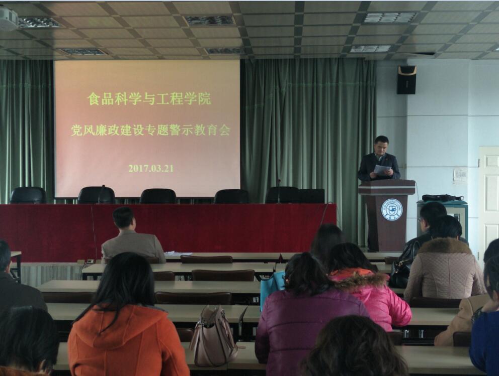 在管理楼三楼报告厅召开了党风廉政建设专题警示教育会。学院全体教职员工参加了会议。会议由党委书记高福和同志主持。 会上,学院党委副书记兼纪委书记梅士伟同志传达了《韩国三级