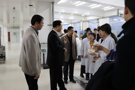 随后,校长一行考察了食品学院的部分实验室和科研平台,就学院实验室的硬件建设,工作环境,科研平台承担项目情况等听取了学院领导汇报并进行了交流。考察过程中,李元元校长还饶有兴致地观看了学院建设图片展,十九大宣传栏等学院文化设施,指出学院的宣传工作有传统,党建工作接地气,有创新。