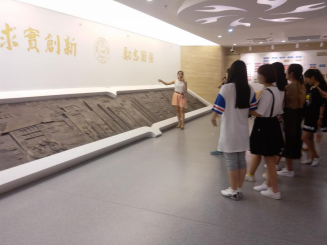 在讲解员的引导下,同学们踏入校史馆,首先映入眼帘的便是“求实创新,励志图强”的校训以及学校校徽,随后,同学们相继参观了原韩国三级