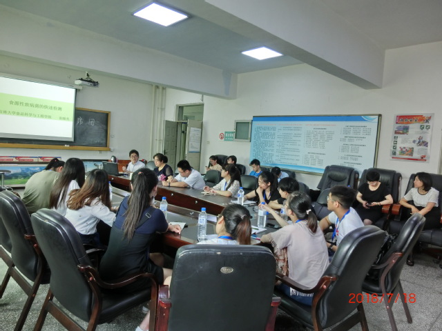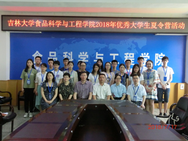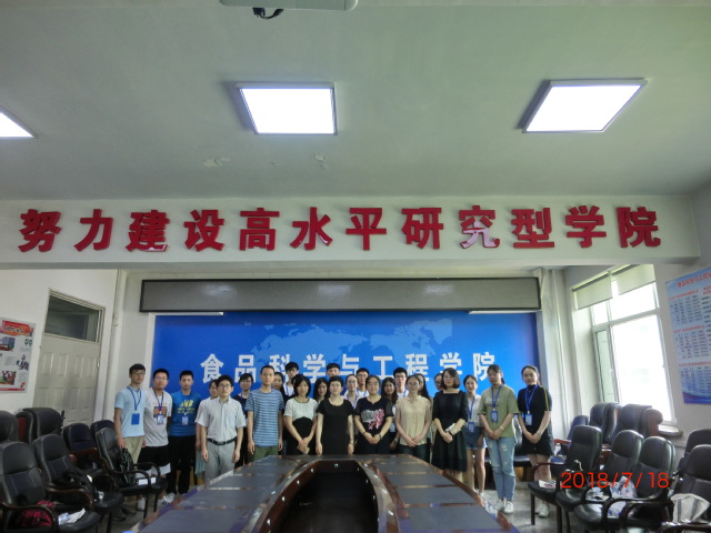 7月19日上午,首先由孙春燕教授具体介绍了学院科研方向与科研团队以及科研成果,并介绍了个人的研究方向,在此基础上,做了食品检测技术讲座。食质系老师分别介绍了各自的科研情况,与营员们进行了热烈的分组讨论。最后进行了营员小测试,并发放了夏令营调查问卷。下午,学院研究生会在林园组织营员开展了综合素质拓展活动。在活动中,营员与在校研究生共同进行了丰富多彩的游戏,锻炼了大家团队配合能力。加深了营员间的友谊,促进了与本校研究生的交流,度过了轻松愉快的午后时光。下午3:30,本次暑期夏令营活动在食品楼会议室进行了闭营式。学院党委书记高福和,院长张铁华教授,副院长庄红教授、副院长孙春燕教授、袁媛教授、研究生办王军老师参加了闭营式。首先庄红副院长主持说到,美好的时光转瞬即逝,大家初步展现出了各具特色的创新精神、合作精神、科研潜力和学习能力,希望营员们一年后,能够入学到韩国三级
