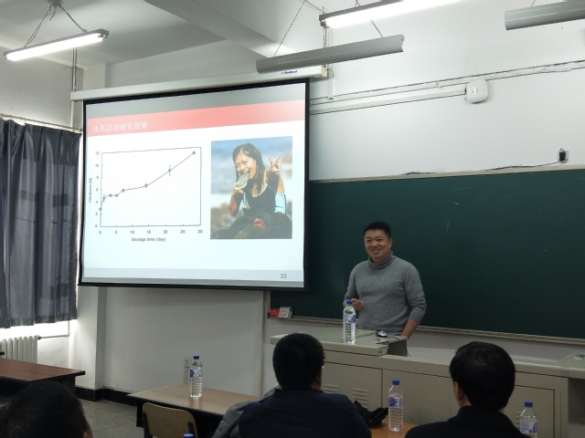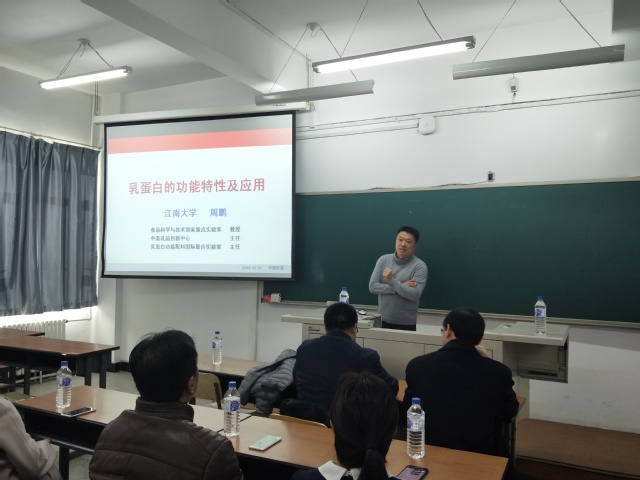 邀请,江南大学食品学院副院长,美国康奈尔大学食品科学系博士,教育部新世纪优秀人才周鹏教授来我院做学术报告。报告在科学讲堂101教室举行,由院长张铁华主持,全体教师、研究生及本科生代表到场参与。周教授以“乳蛋白研究进展”为题,为学院师生带来一场精彩的学术报告。