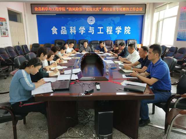 “防风险保平安迎大庆”消防安全专项整治行动方案》(校消字[2019]第13号)的工作安排,6月5日上午,学院召开了消防安全专项整治工作会议,学院党政领导班子成员、各系、办公室、实验中心主任参加了会议,会议由行政副院长李勇军主持。