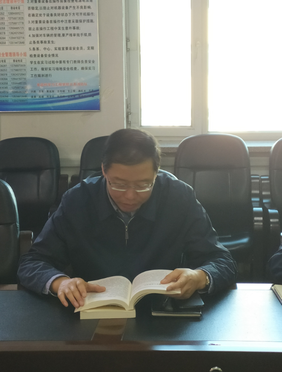 学院副院长李勇军同志带领学习《汇编》中《广大干部特别是年轻干部要做到信念坚,政治强,本领高、作风硬》篇章。李院长强调,高校是培养社会主义建设者和接班人的重要阵地,作为高校党员干部,要树立高标准,做好思想引领,增强贯彻落实的政治自觉、思想自觉和行动自觉,担当实干,履职尽责,积极投身学院的改革发展建设当中。