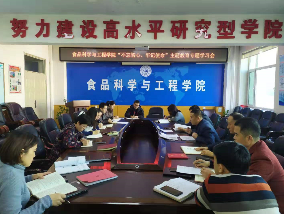 在食品楼三楼会议室召开了“不忘初心、牢记使命”主题教育专题学习会,学院党委委员、纪委委员、各党支部书记参加了会议。会议由学院党委书记高福和同志主持。