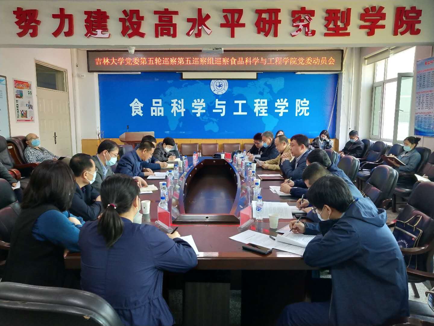 党委工作动员会在食品楼三楼会议室召开。学校巡察工作领导小组成员刘晓昌、党委第五巡察组组长李佰志及全体成员、学院领导班子全体成员,近三年退出管理岗位的班子成员,党委委员、纪委委员,学术委员会主任、学位评定委员会主任、教学委员会主任,支部书记、系(办、中心)主任,教职工代表等参加了会议。会议由韩国三级