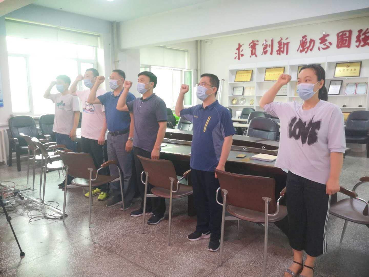 首先,机关党支部全体党员右手高擎,神情庄重,郑重宣誓:“我志愿加入中国共产党,拥护党的纲领,遵守党的章程,履行党员义务,执行党的决定……”,铿锵有力,信念坚定,抒发了对党的忠诚。