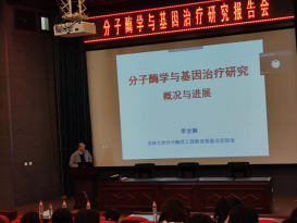 ,为学院师生做了一场以“分子酶学与基因治疗研究”为主题的学术报告。学院教师代表全体研究生在现场参加本次报告会,赵凤老师及部分本科生在线上参加本次报告,学院副院长孙春燕教授主持报告会。