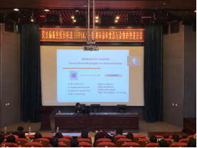 报告会上, Sergei教授向大家介绍了检测环境与食品污染物的几种传统色谱检测方法与免疫检测分析方法,随后对荧光偏振免疫分析法的实验原理、方法优劣、仪器设备与检测应用进行了重点讲解。在检测应用的部分,Sergei教授列出了具体的文献数据进行阐述,并介绍了与多所中国高校的合作成果。报告结束之后,Sergei教授细致耐心地对师生们的疑问做出了解答,并就实验设计等方面与大家进行了交流。