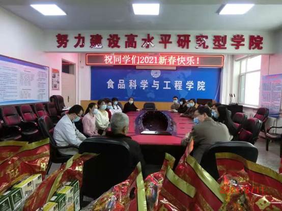 大年三十下午四时,食品楼三楼会议室喜气洋洋,学院利用学生除夕年夜饭前时间,将当时在校师生汇集在一起,开展了一场简捷、热情的留校研究生团拜活动。学院党委书记董怀智、学院院长张铁华、教师赵凤、研究生办公室主任王军以及14名留校研究生参加了本次活动。