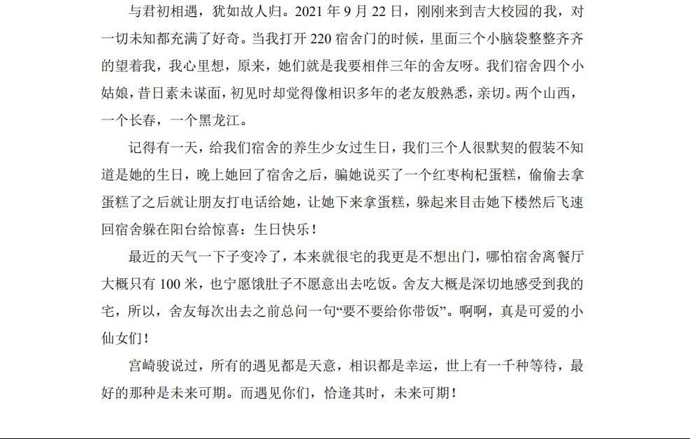 于2021年12月10日至12月12日开展了令我“温暖的一件事”故事征集活动。活动一经发出,得到了同学们的积极响应。大家热情高涨、踊跃参赛,活动取得了良好的效果,经过评议后选出了10份优秀作品。