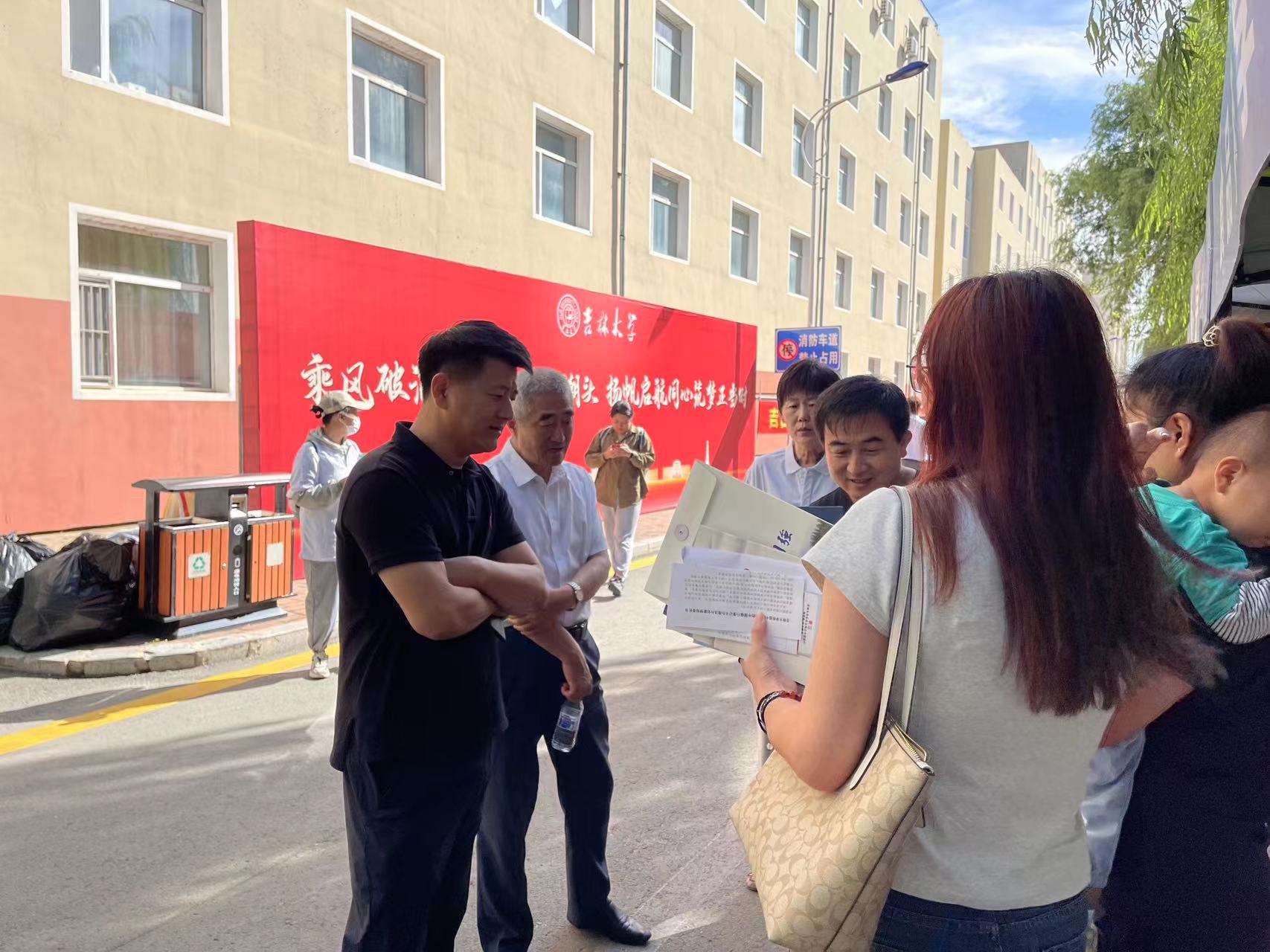8月23日上午7:20,迎新工作者们准时到达设立于学生第五公寓前的迎新接待站,穿上了统一的迎新服,开始了忙碌的迎新工作:现场身份确定、发放新生材料袋、办理银行卡业务、耐心回答新生们的各种问题,为新生们指引宿舍楼的方向。正午时分艳阳高照,工作人员们毫不懈怠,认真负责,迎新工作得以顺利圆满地推进。