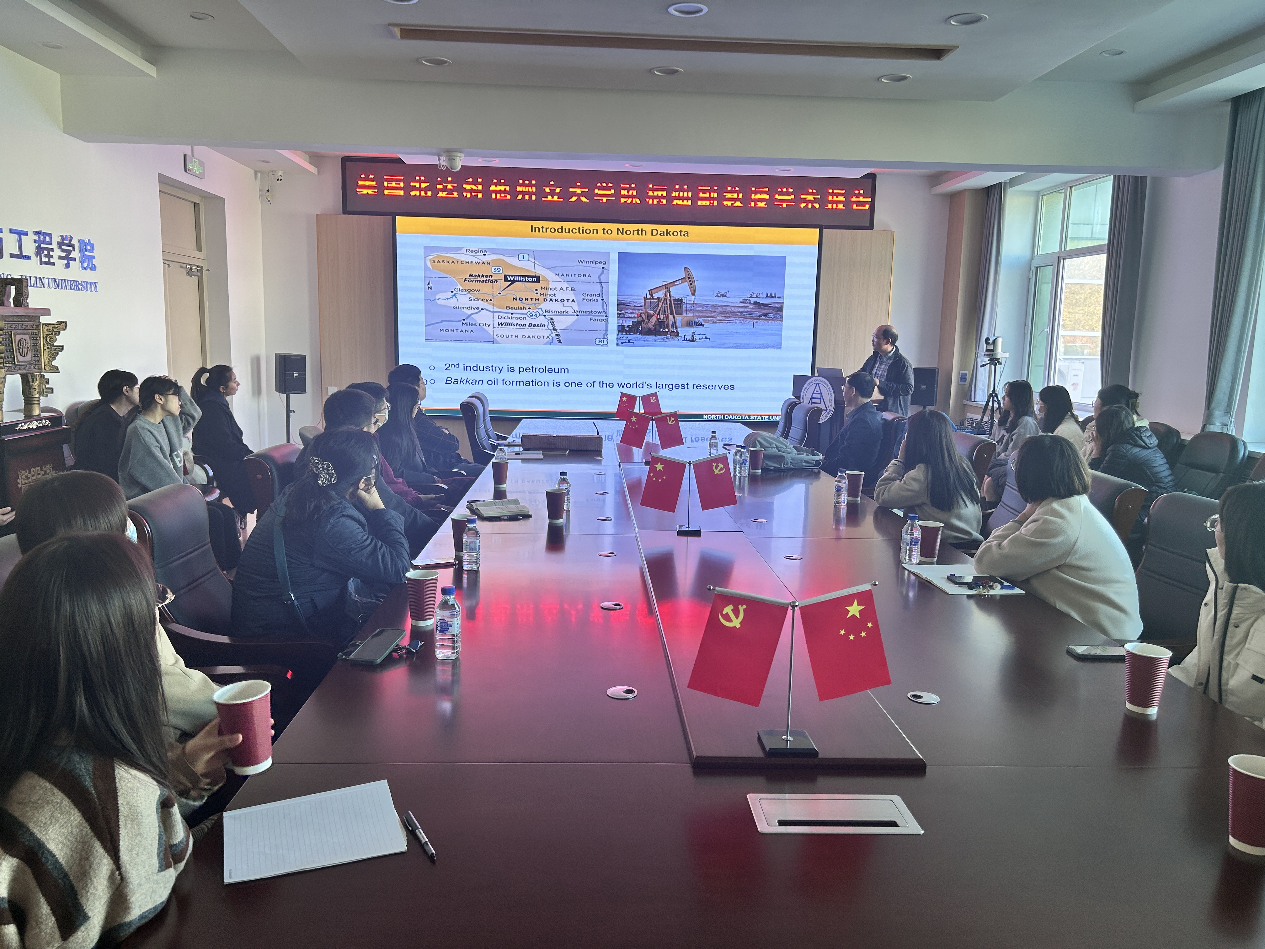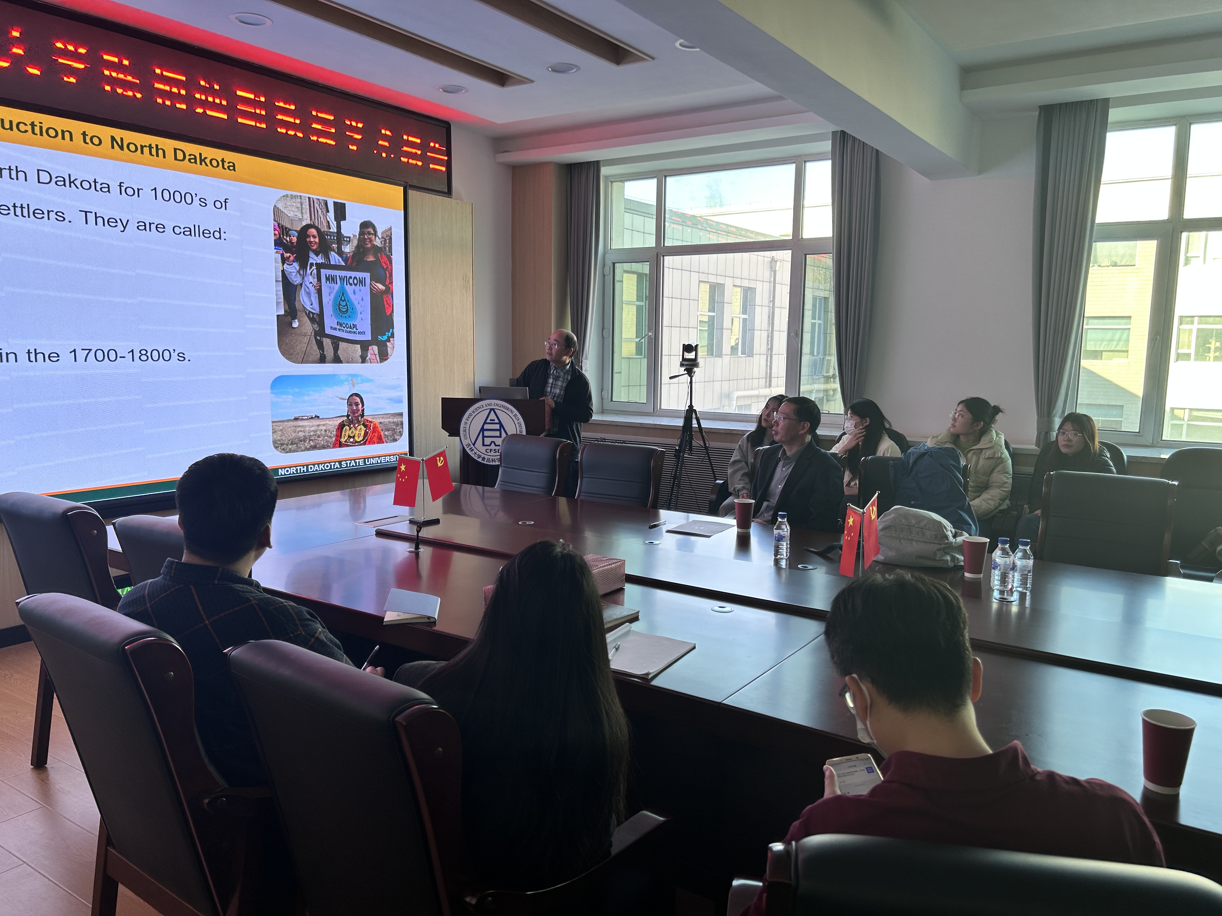 会上,陈老师向大家介绍了北达科他州的基本情况,主要包括土地资源、人口结构、农业与食品工业产业模式和发展现状。随后,他介绍了北达科他州州立大学食品与谷物科学专业发展情况,尤其是当地谷物科学的发展优势,专业的课程设置、人才培养模式、学生就业发展方向,以及学院内各实验室的特色研究方向。报告最后,他论述了吉林省与北达科他州的自然禀赋、土地资源、产业结构等方面相似之处,这给韩国三级