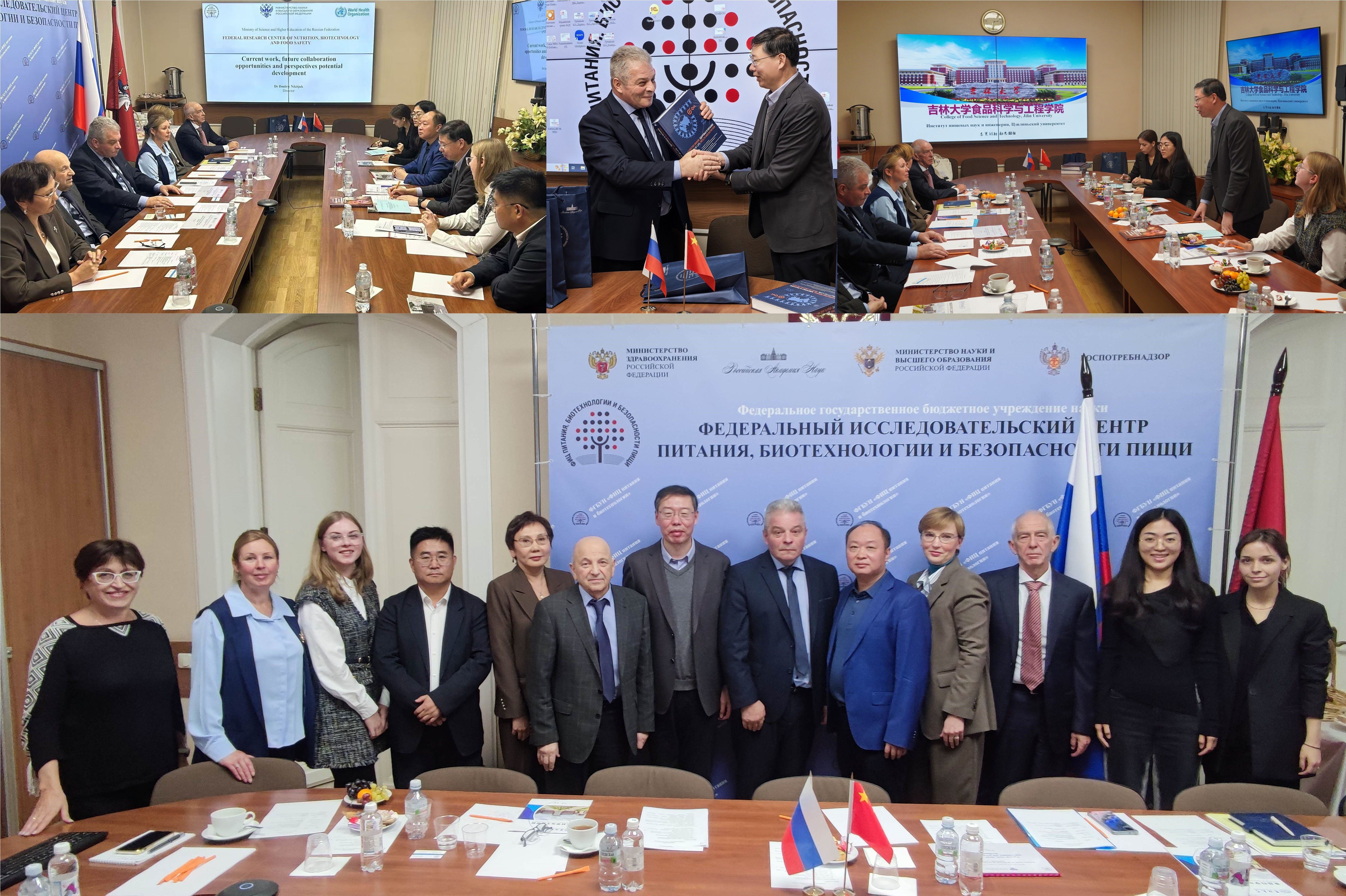 访问俄罗斯联邦营养、生物技术和食品安全研究中心期间,俄罗斯科学学院院士兼研究中心院长尼基秋克·德米特里·博里索维奇(Nikityuk Dmitry)和俄罗斯科学学院院士图捷利扬·维克托尔·阿列克桑德罗维奇(Tutelyan Victor)等人会见代表团并进行会谈交流。张铁华院长就学校发展历程、学科建设进展、国际交流合作和人才培养情况进行介绍。德米特里·博里索维奇·尼基秋克(Dmitry Borisovich)和叶菲莫奇基娜·娜塔莉娅·拉玛扎诺夫娜(Efimochkina Natalia)等人分别介绍了研究中心概况和主要研究方向,双方就下一步合作达成初步意向。