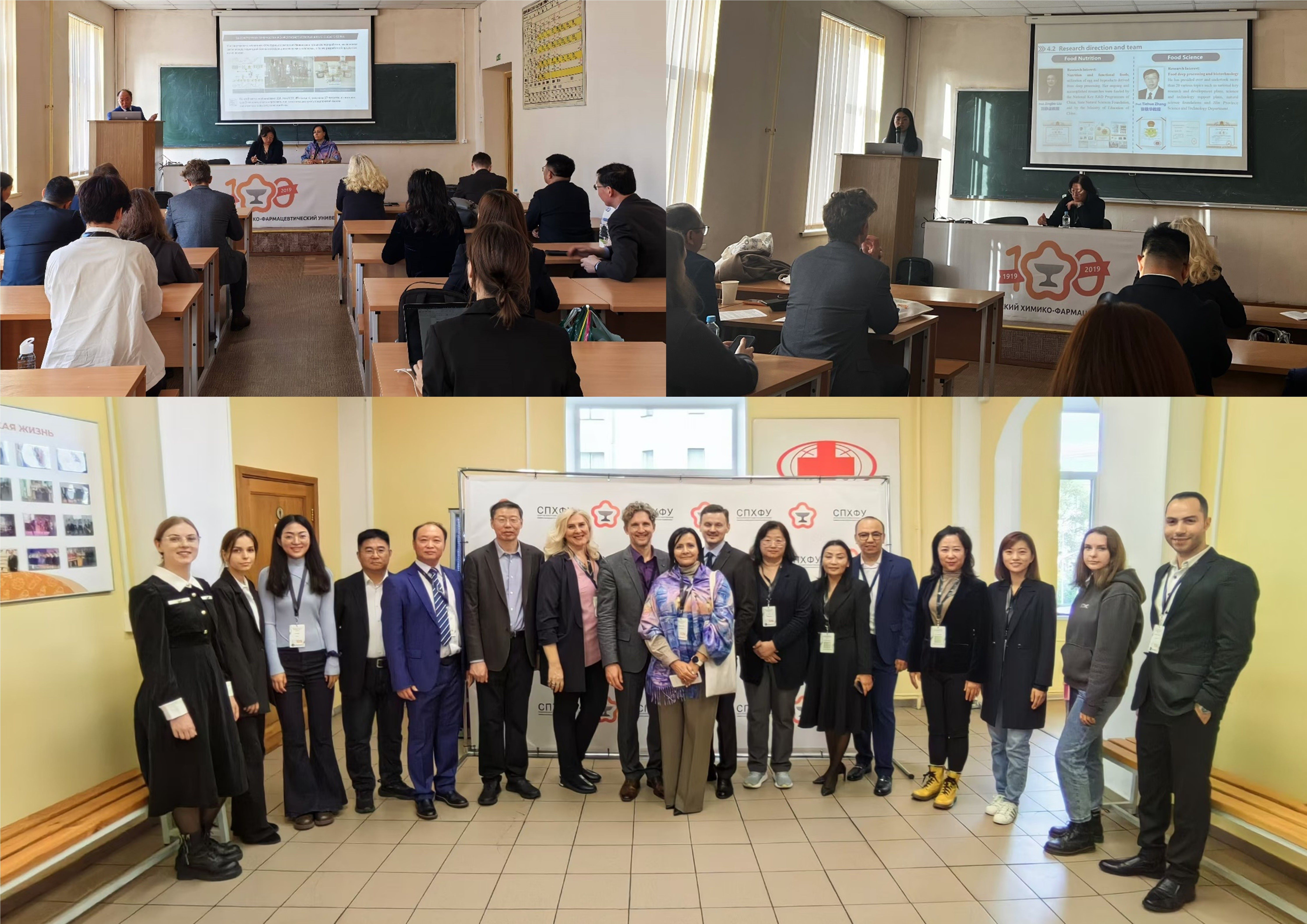 访问圣彼得堡国立化学药物大学期间,代表团受到生物技术与工程研究中心的纳德托奇·柳德米拉·阿纳托利耶夫纳(Nadtochii Liudmila)教授会见,并应邀参加了2024年XXV International congress PhytoPharm国际会议。李杨教授作了题目为“The latest scientific achievements and international cooperation in soybean processing technology in China”的报告,梁媛副教授作了题目为“Biological activities of natural compounds targeting receptor”的报告,并与全球优秀学者探讨前沿科学研究成果。