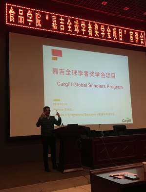 和嘉吉集团达成的共识,嘉吉集团同意在我院设立“嘉吉全球学者奖学金项目”。2018年11月27日,嘉吉集团代表、我校2008届校友、嘉吉生化有限公司财务总监包嘉博先生与奖学金项目承办方国际教育协会代表吴茂勤先生莅临食品学院,正式启动这一项目。