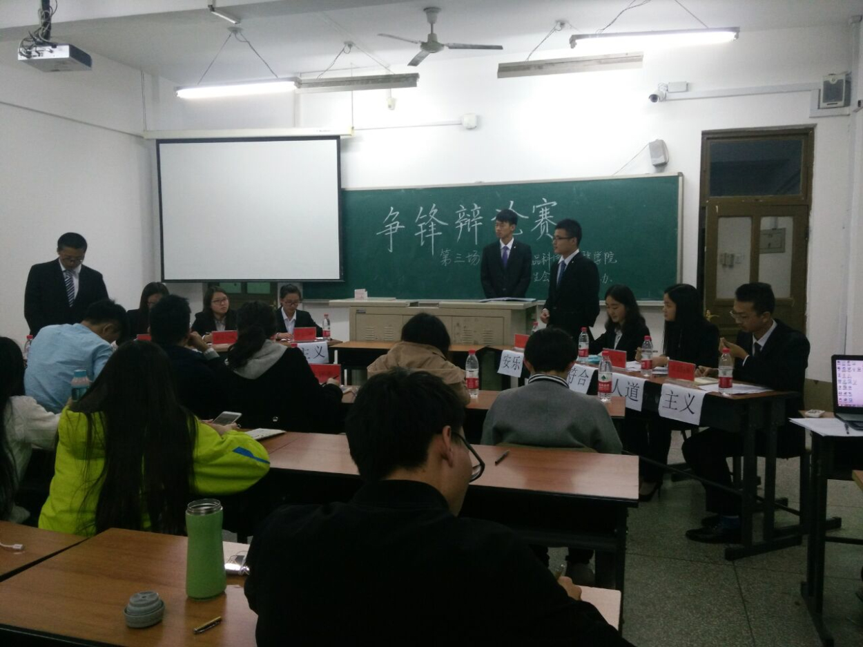 第二届争锋辩论赛于近日正式拉开帷幕。10月8日至9日,本届争锋辩论赛初赛在2015级学生之间展开,15级各班分别组织6个班级代表队和4支自由代表队参赛,各参赛队围绕“相爱容易相处难还是相处容易相爱难”“安乐死是否符合人道主义精神”等大学生关心的社会热点问题展开辩论。学院学生会主要成员作为赛事评委参与了本次活动。 辩论过程中,参赛的各支队伍各抒己见,场面十分激烈。经过开篇立论、质询、自由辩论和总结陈词阶段,辩手们都对己方的观点加以详细而又精彩激烈的论述。在比赛结束后,军需科技学院辩论队队员孙泽平学长对本次辩论会加以点评,对辩手们的精彩表现加以鼓励和赞扬,并进一步提出更高的要求与建议。 经过初赛比拼,三班代表队、四班代表队、五班代表队和六班代表队晋级,他们将在即将到来的复赛中将继续展开激烈角逐。