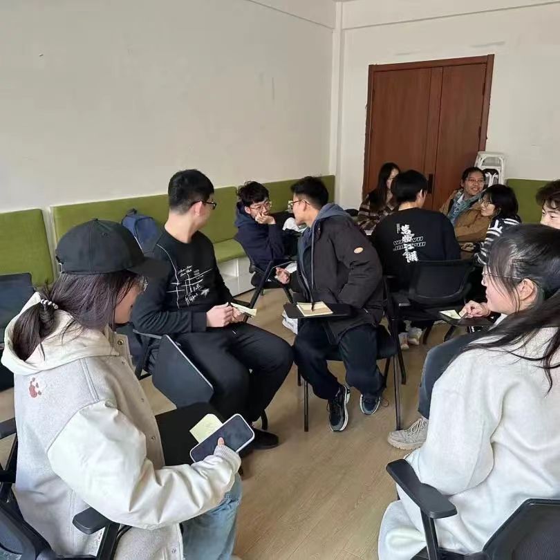 本次“心灵沟通”主题班会团体心理辅导在敬信楼A101心理团体活动室以班级为单位进行,分为“暖身阶段”与“班会阶段”。暖身阶段由各班心理委员担任主持人介绍此次班会的目的和性质,为大家分发带有心理中心图案的贴纸,同学们写上自己的组内昵称后,由主持人带领进行放松游戏,活跃班会气氛。在“情绪大头贴”环节,主持人组织同学随机抽取情绪卡片,同学们通过表演自己所抽到的情绪,由其他组同学猜测所对应的情绪卡片。通过暖身阶段,同学们放松了身心,同时在组内的沟通交流中表达情绪、辩识情绪。
