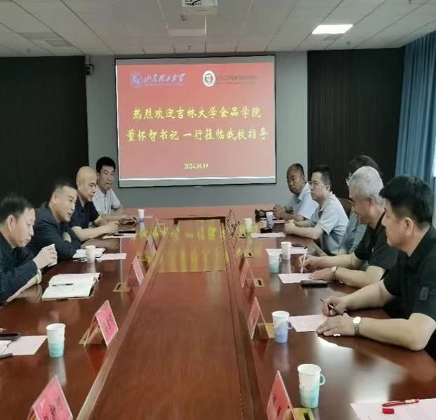 党委书记董怀智一行到山东理工大学生物工程与食品科学学院进行调研,与山东理工大学生物工程与食品科学学院党委书记徐启达,党委副书记、执行院长李志合,党委副书记姜素锦,食品学科系主任赵新河座谈交流。