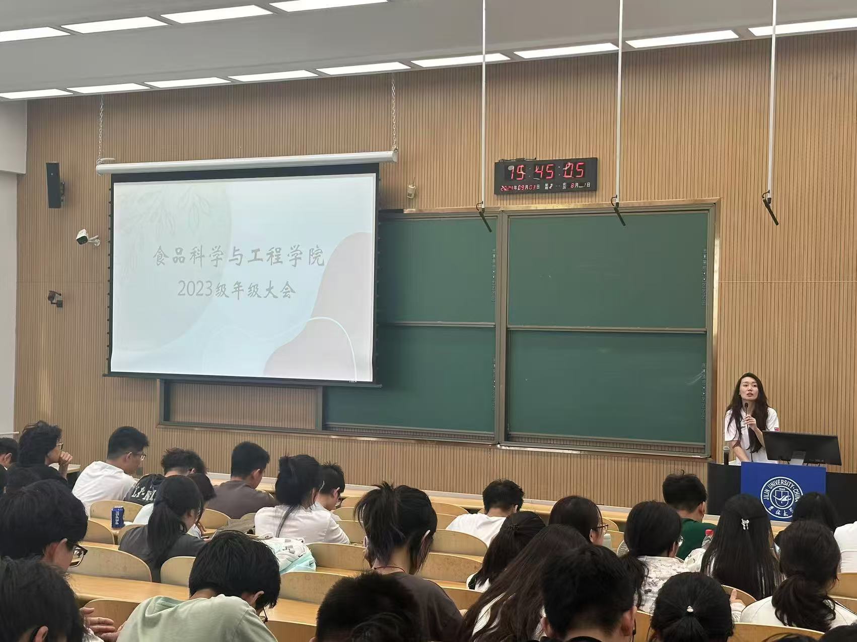和平校区科学讲堂召开2023级年级大会。会议由2023级辅导员王新欣老师和研究生兼职辅导员王博旭老师主持,全体2023级学生参会。