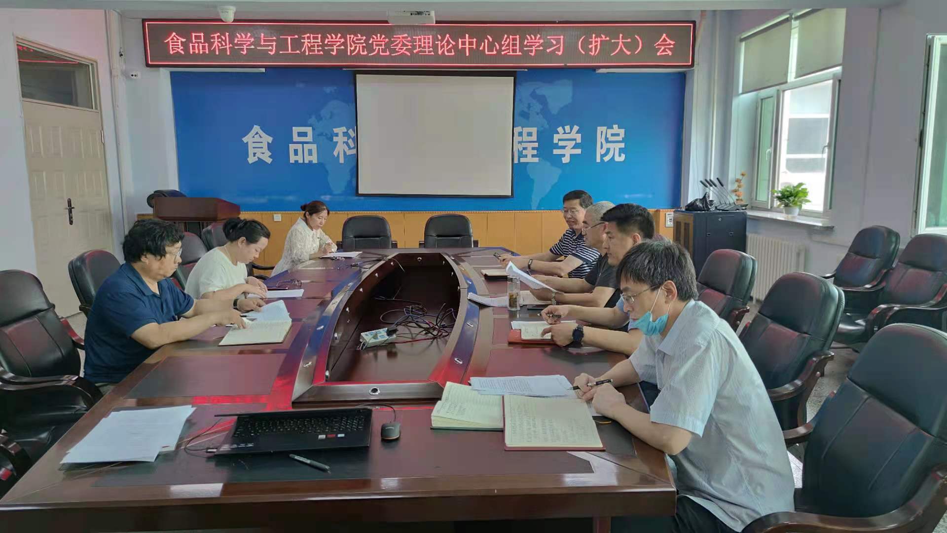 在食品楼三楼会议室召开党委理论中心组学习(扩大)会议。围绕习近平总书记在庆祝中国共产党成立100周年大会上的重要讲话精神开展专题学习交流。学院党委委员、领导班子成员参加了会议。会议由学院党委书记董怀智主持。
