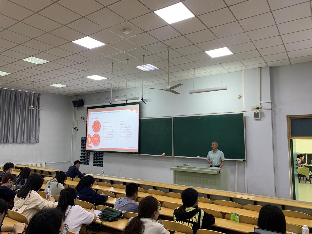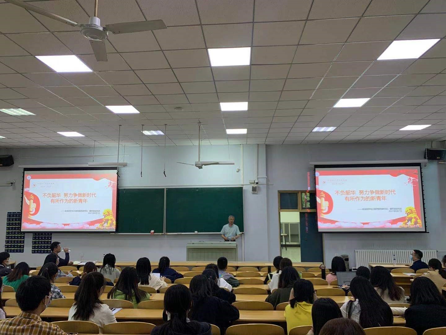 党委书记董怀智主讲,讲授的主题是“不负韶华,努力争做新时代有所作为的新青年”。讲座中,董书记首先对标题中的“不负韶华”、“新青年”、“新时代”等关键词进行了解析,特别是对“新时代”的理解,把同学们带入到了我们党的百年奋斗历史之中,通过对校党委书记姜治莹在学校研究生专题党课宣讲时归纳的“革命、建设、改革、复兴”四个关键词的串讲,全面印证了我们党的伟大、光荣和正确!进一步坚定了同学们的“四个自信”、树立“四个意识”和做到“两个维护”。随后他从"‘青年强则国家强’ 新时代赋予青年的重大责任;‘打铁还需自身硬’ 新时代建设需要有本事的新青年; ‘百舸争流千帆竞’ 新时代的发展呼唤青年有所作为"三个方面进行讲授。他结合新中国七十年来的飞速发展,对新时代赋予新青年的发展责任、政治责任、民族责任对新时代的大学生重大责任进行了解析;结合新时代的国际背景和国内建设需要对新时代的大学生应具备的过硬的政治素质、新锐的科学知识、健康的身心体魄进行了点拨;结合新时代有所作为要求同学们不断解析自我内在修为、与时俱进完善自身综合素质、全身心的融入到新时代建设洪流之中!最后,董书记要求全体同学们作为无比幸运的一代,有幸见证了百年未有之大变局,更有幸成为推进中华民族振兴的一员,就要为我们伟大祖国重回世界之巅出一份力!不负韶华 努力争做新时代有所作为的新青年!!